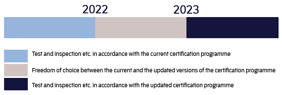 - For the rest of 2022 there is freedom of choice between the current and the updated version of the certification programme.