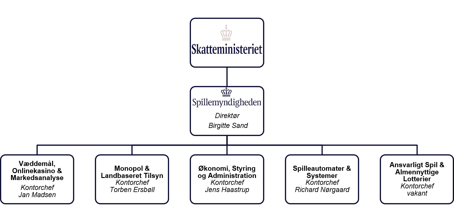 De fire nye kontorer har fået navnene ”Lotteri og Monopol”, ”Væddemål og Onlinekasino”, ”Spilleautomater og Ansvarligt Spil” og ”Økonomi, Styring og Analyse”.