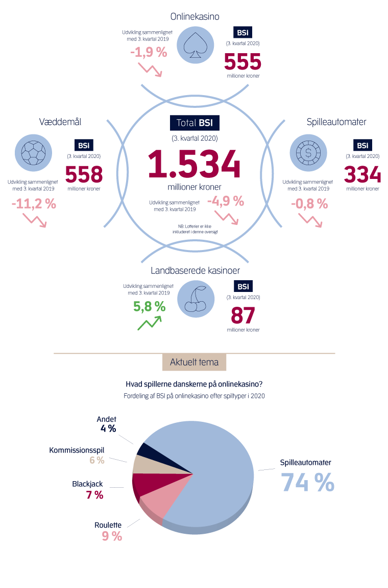 Spillemyndighedens statistik for 3. kvartal 2020 over det danske spilmarked kan ses i Power BI. I Power BI-rapporten er det muligt at se alt statistik fra 1. kvartal 2012 og frem.