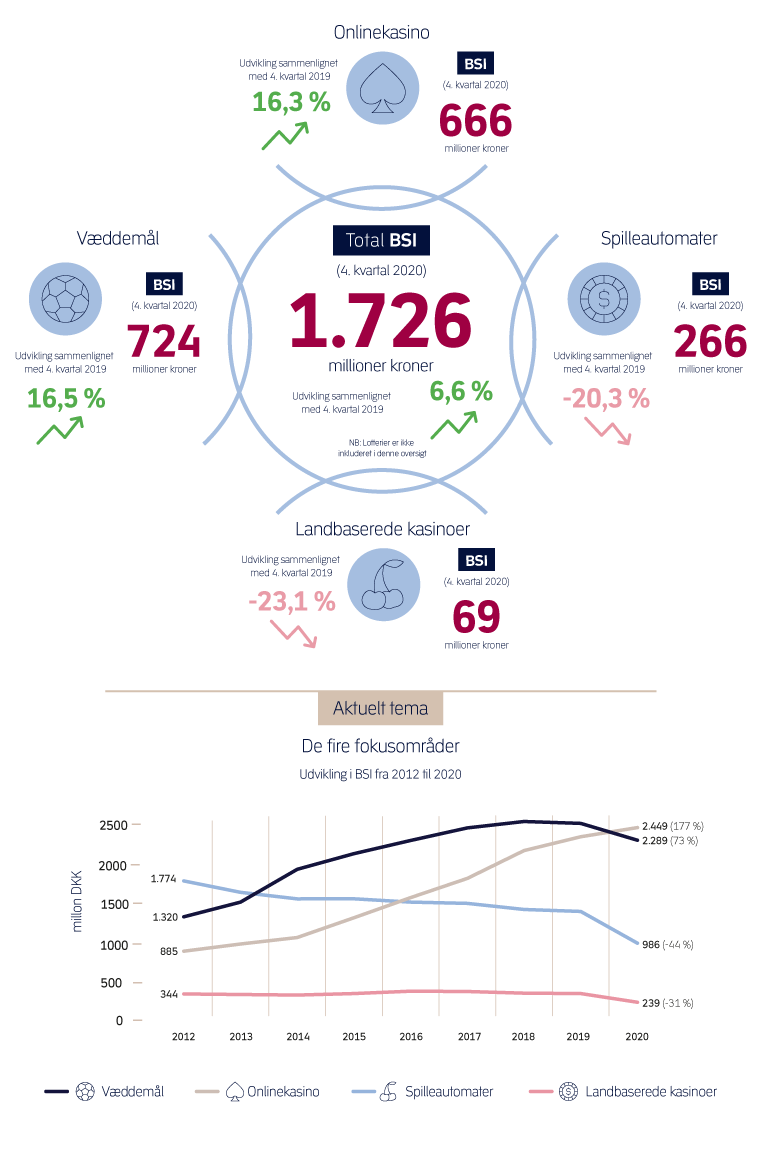 Spillemyndighedens statistik for 4. kvartal 2020 over det danske spilmarked kan ses i Power BI. I Power BI-rapporten er det muligt at se alt statistik fra 1. kvartal 2012 og frem.